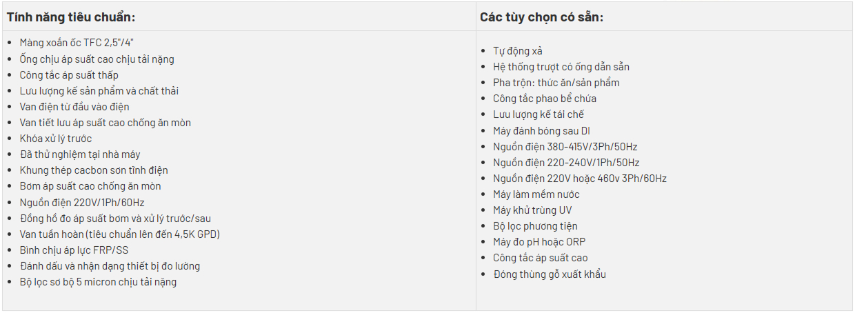 Là nhà cung cấp toàn cầu, chúng tôi cung cấp đầy đủ các hệ thống thẩm thấu ngược được thiết kế sẵn và tùy chỉnh cho mục đích thương mại, từ  600 đến 18.000 GPD. Các hệ thống RO thương mại này sản xuất nước chất lượng cao với chi phí rất thấp, tất cả đều được thiết kế bằng công nghệ tiên tiến nhất để có các giải pháp chính xác và tùy chỉnh.