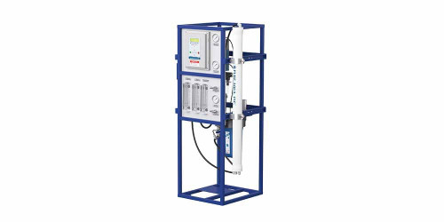 Máy lọc thẩm thấu ngược thương mại lắp trên bệ trượt  có nhiệm vụ lọc nước từ các nguồn nước như hồ, sông và giếng. Hệ thống RO thương mại sử dụng bơm áp suất cao để tạo áp suất cho nước lợ hoặc nước mặn trên bề mặt của màng bán thấm có chứa các lỗ nhỏ. Các phân tử nước chỉ được phép chảy qua các lỗ nhỏ trong khi ngăn chặn các tạp chất như muối, hạt, khoáng chất và các chất hữu cơ khác đi qua. Các lỗ nhỏ này có khả năng loại bỏ vi khuẩn và các tác nhân gây bệnh mạnh. Vào cuối quá trình này, nước sạch, tinh khiết sẽ chảy ra ở phía có áp suất thấp hơn trong khi muối, khoáng chất và các chất hữu cơ khác được đưa vào dòng nước muối rồi vào cống.
